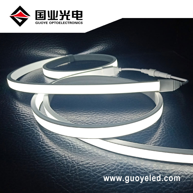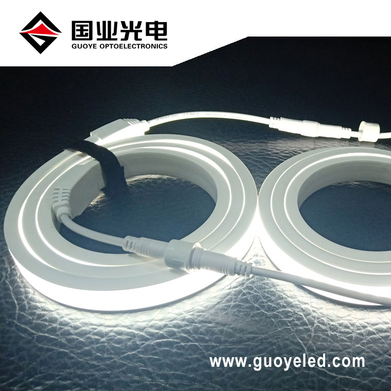 Guoye Optoelektronikk-fabrikken tilbyr fleksibel neon led stripe 220v lys. Kjøp batchantall med rabattpris. Nylig ankommet produkt, anti-Dazzle høyspent LED-stripe, PVC-utseende melkehvit maske, bruker 2835 SMD, 144 lysdioder per meter, lett kroppsstørrelse er 15 x 7 mm, 2 års garanti. Kan tilpasses farge varmhvit 3000K, naturhvit 4000K, positiv hvit 6000K, etc., 50 meter/rull/boks emballasje, med kraftledninger og andre kontakter. Velkommen til å lære mer om produktspesifikasjoner.